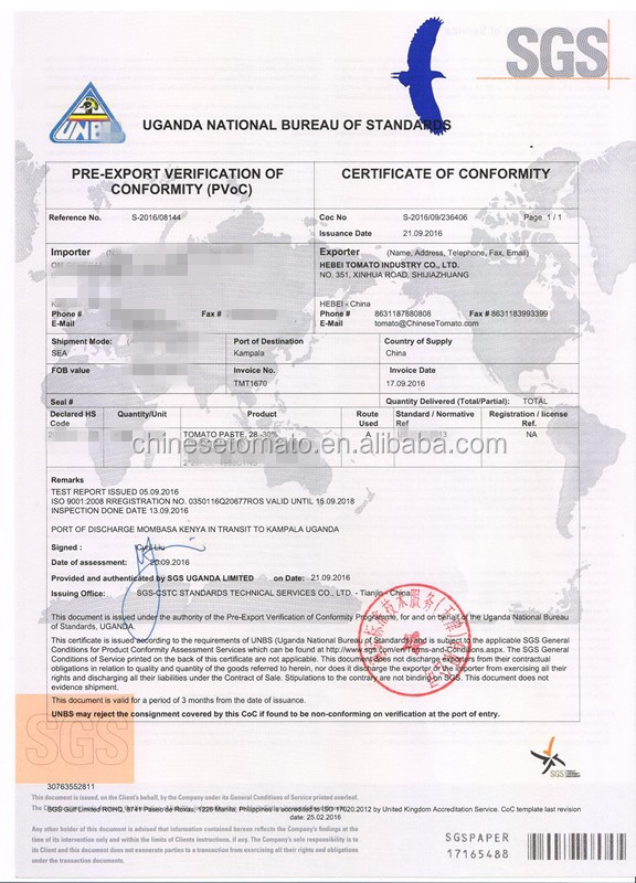 HACCP, ISO, QS, SGS, BV, HALAL, NAFDAC