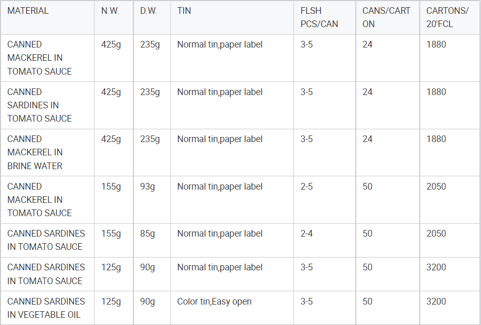 Hebei Tomato Industry Co., Ltd. is the leading manufacturer canned food–fish in Hebei, China, established in 2007 Specializing in the processing of all kinds of Canned sardine, mackerel and Tomato Paste . We have 9 production lines and our annual production is 65,000 tons. We regularly exporting to Africa, Europe, Southeast Asia, Middle East and so on many countries with large quantity.