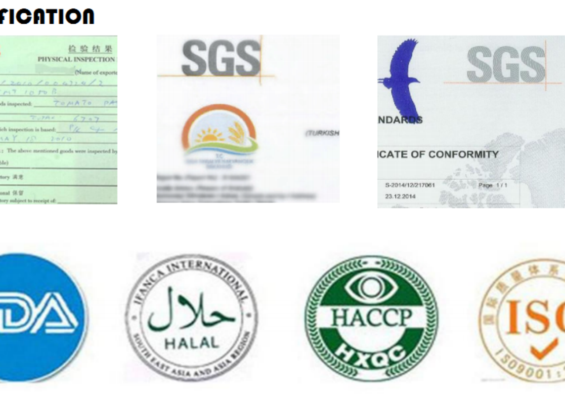 ISO, HACCP, QS, HALAL, AEO,SGS... |